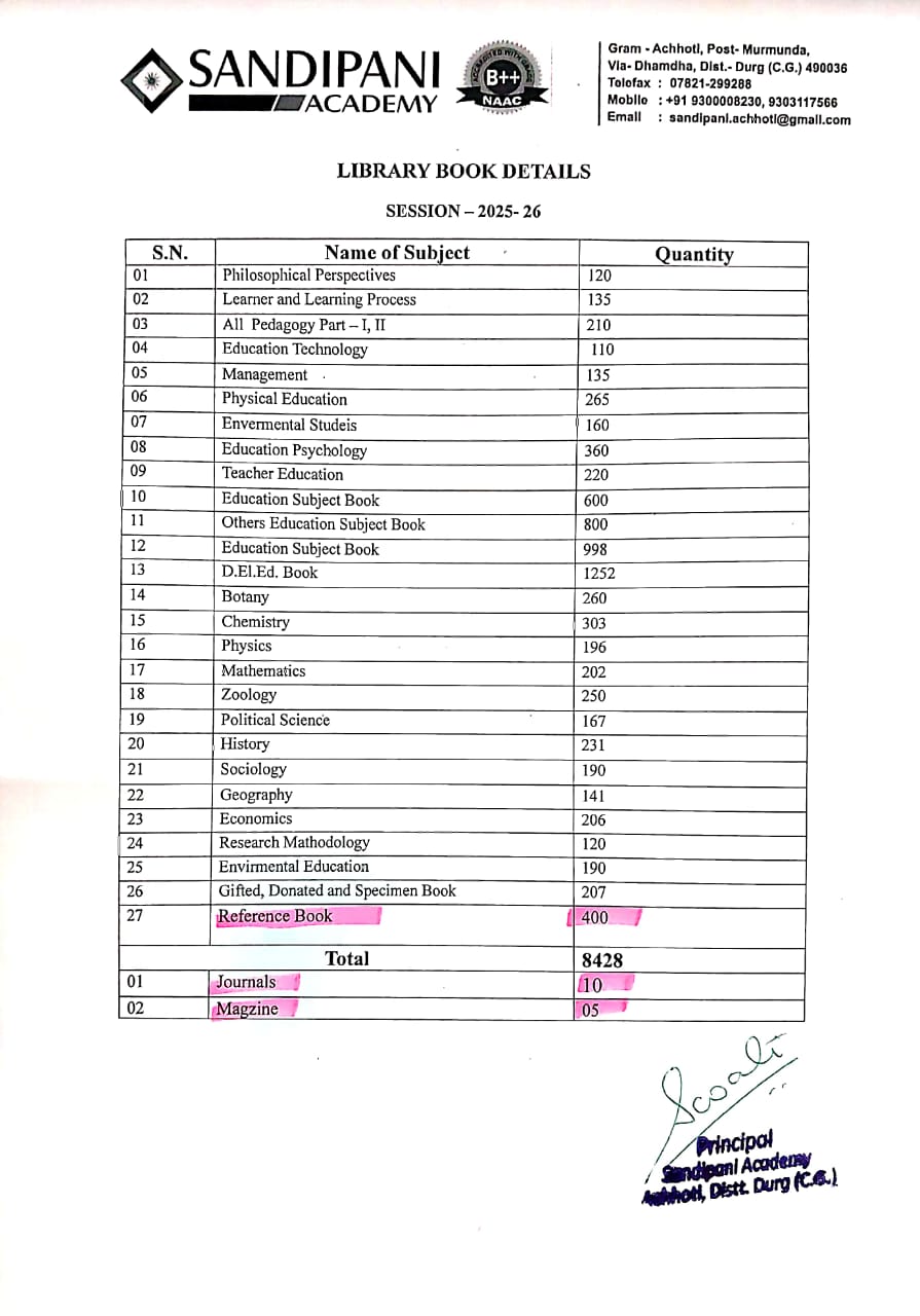 (1) https://www.sandipanieducation.org/College.aspx?PageName=Books,%20Journals%20and%20Magazines